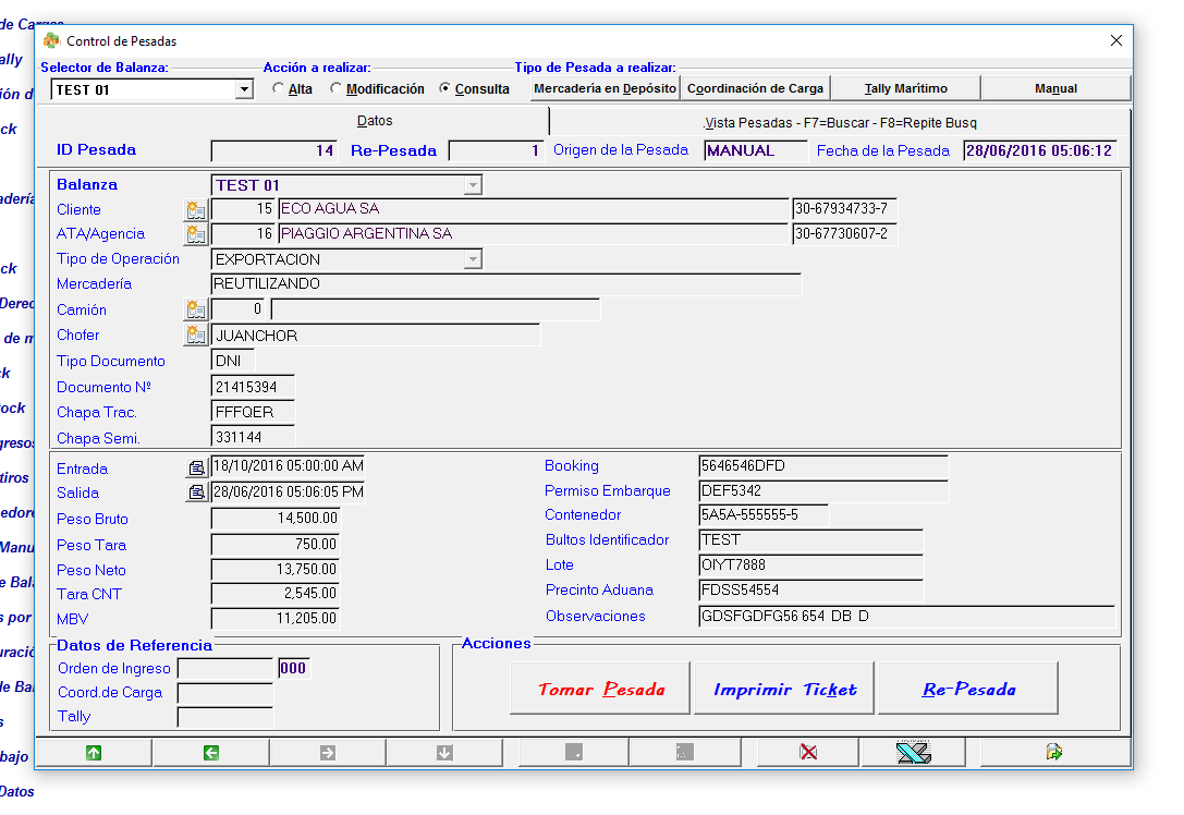 Toma de Pesada de Balanza